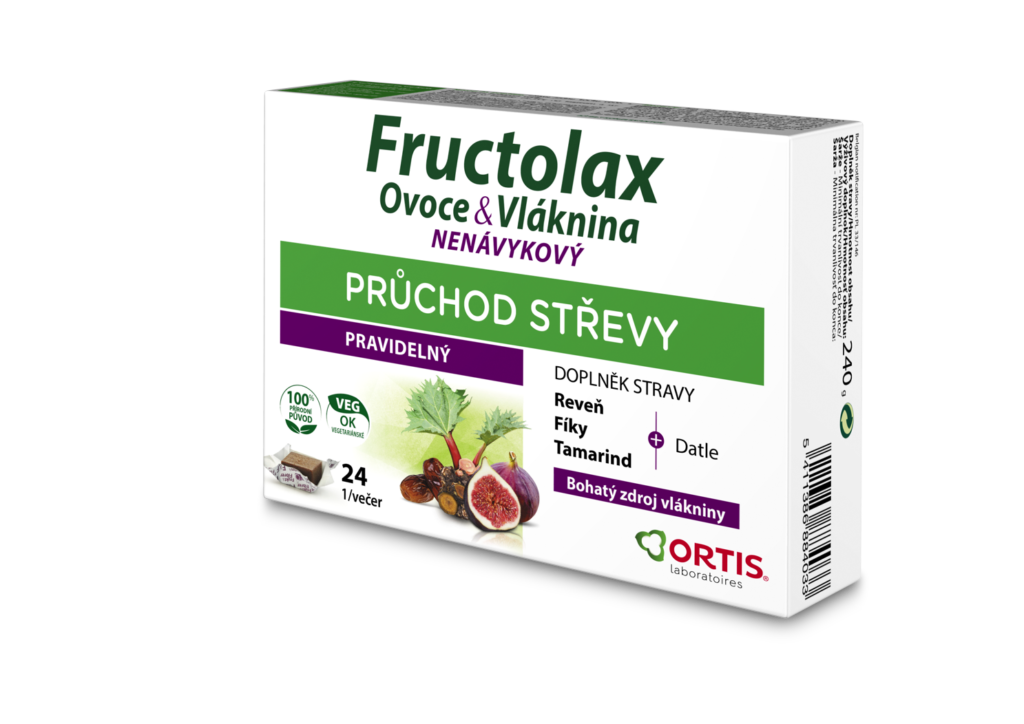 Fructolax obsahuje výtažky z ovoce a vlákninu, které ovlivňují průchod střevy a přispívají k pravidelnému vyprazdňování. Působí jemně a účinně.