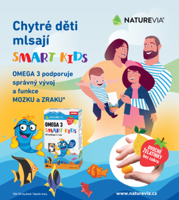 Doplněk stravy Naturevia Omega 3 Smart Kids má podobu želé s ovocnou příchutí. Dětem stačí dávat jen jeden kousek denně, protože se v něm skrývá dostatečně velká porce 360 mg omega 3 a řadí se mezi nejsilnější omega 3 pro děti na trhu. Navíc přípravek je zcela přírodní, bez cukru, chemických přísad a hlavně bez rybí pachuti. Díky unikátní technologii se z želé uvolňují zdravé tuky omega 3 ve stejné podobě, jako když je přirozeně přijímáte z jídla. Jsou tedy lépe vstřebatelné než z jiných doplňků. Vaše dítě tak dostane vše potřebné, aby mohlo objevovat svět.