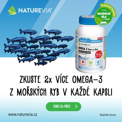 V případě doplňku stravy Naturevia Omega 3 One-a-Day obsahuje jedna kapsle minimálně 700 mg omega 3 mastných kyselin, což je 2x více EPA a DHA oproti běžným přípravkům s rybím olejem. Denní dávku omega 3 získáte pohodlně z jediné kapsle.